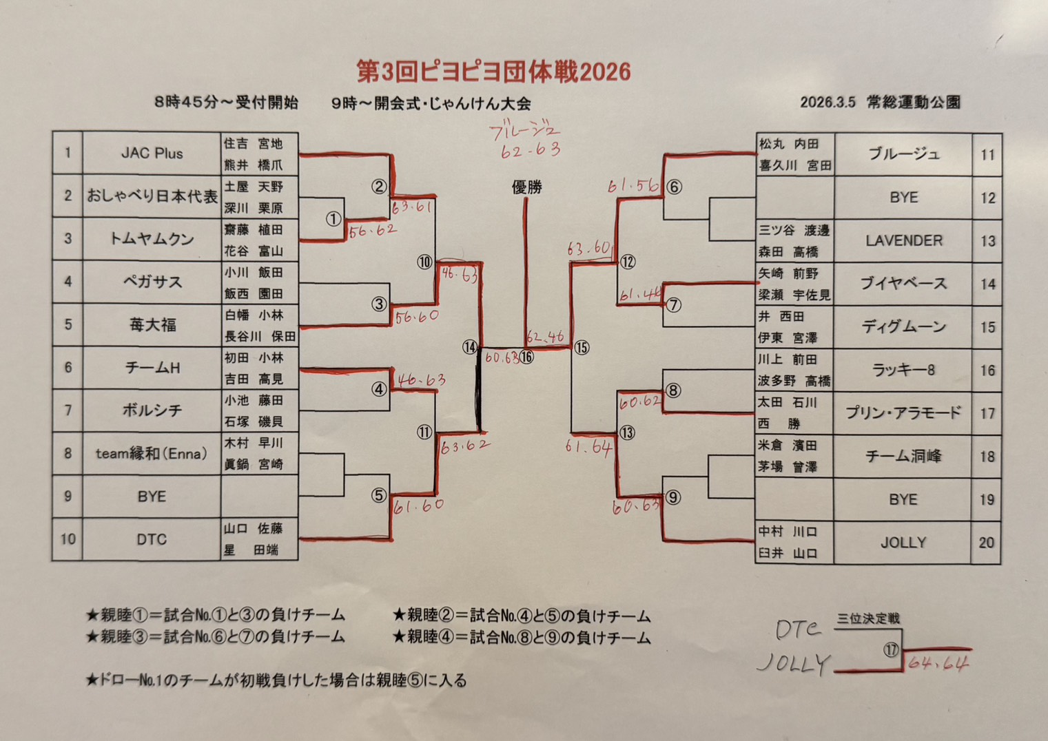 2026年3月5日 / 最終更新日 : 2026年3月5日 admin イベント情報 第3回ピヨピヨ🐣女子ダブルス団体戦 結果 優勝 ブルージュ 準優勝 苺大福 3位 JOLLY Follow me! FacebooktwitterHatenaPocket